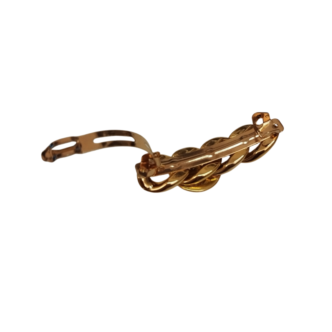 Eleganza e funzionalità si incontrano nella Fermagli Calamita Catena Gold. Realizzata in resina di alta qualità e colore oro, questa creazione esclusiva si ispira alla forza della connessione. Con una forma unica a catena, è pensata per chi desidera aggiungere un tocco di lusso al proprio stile quotidiano, senza rinunciare alla praticità. La misura di 4 cm la rende perfetta per fissare i capelli con discrezione, ma anche per impreziosire il look con una nota audace.